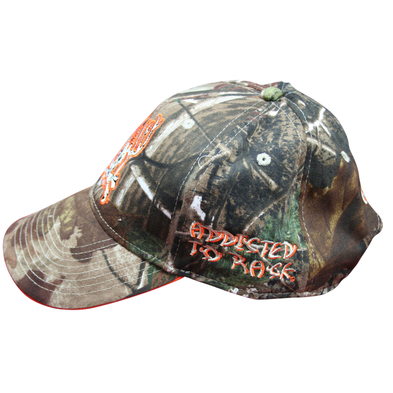 Realtree® AP HD Camo - # 1 brand of camo features “Rack Addict” logo on front and additional custom embroidery on side and back.
